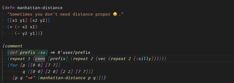 > 整合 REPL、linting、內聯評估、測試運行 程式等. 由蘋果酒和 nRepl 提供支持.