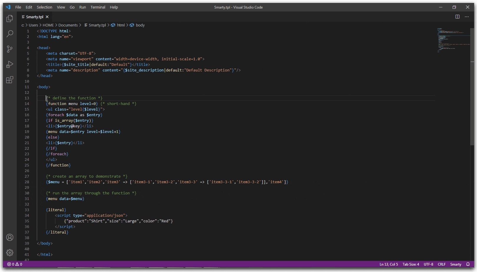 > Smarty 模板支持格式化、摺疊、片段、語法高亮等.