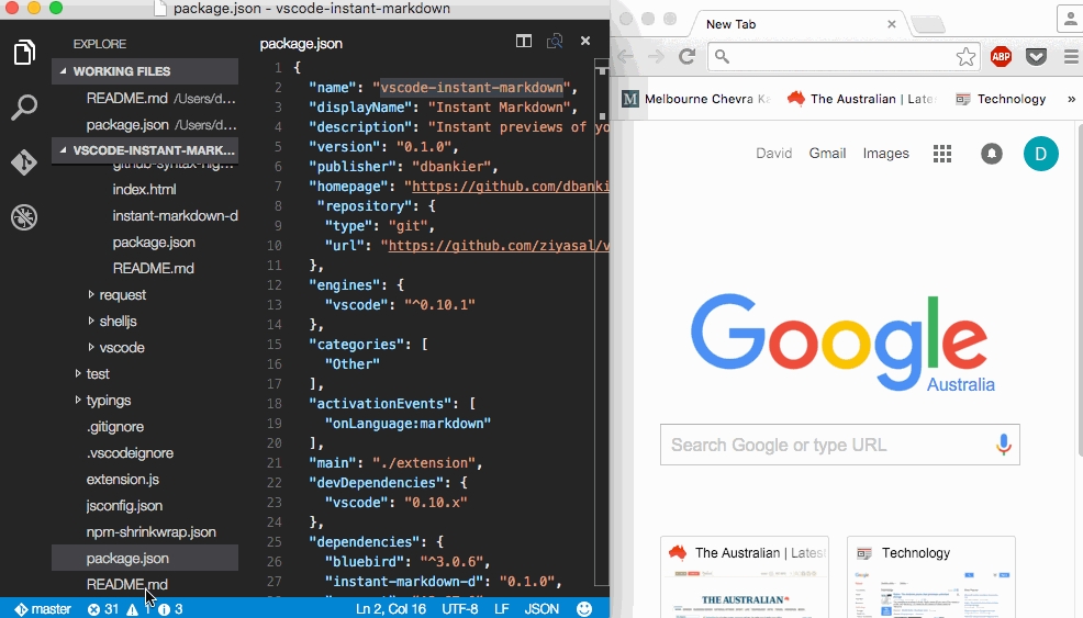 Mark down preview - Markdown Preview Enhanced 是一個擴展,它為您提供了許多有用的功能,例如自動滾動同步、數學排版、美人魚、PlantUML、pandoc、PDF 導出、程式碼塊、Demo文稿編寫器等.它的很多想法都受到 Markdown Preview 的啟發Plus 和 RStudio Markdown.