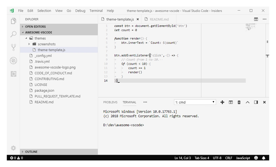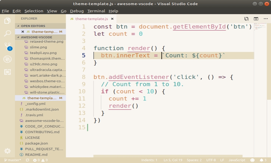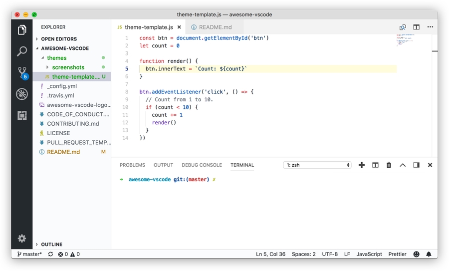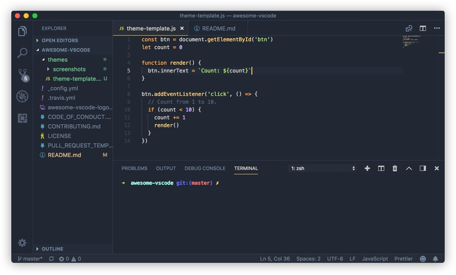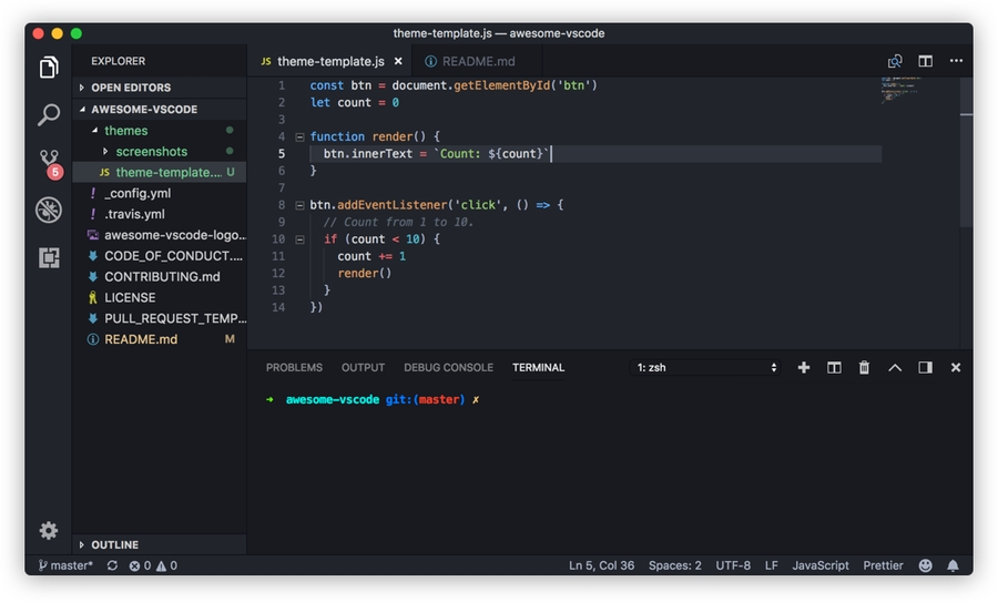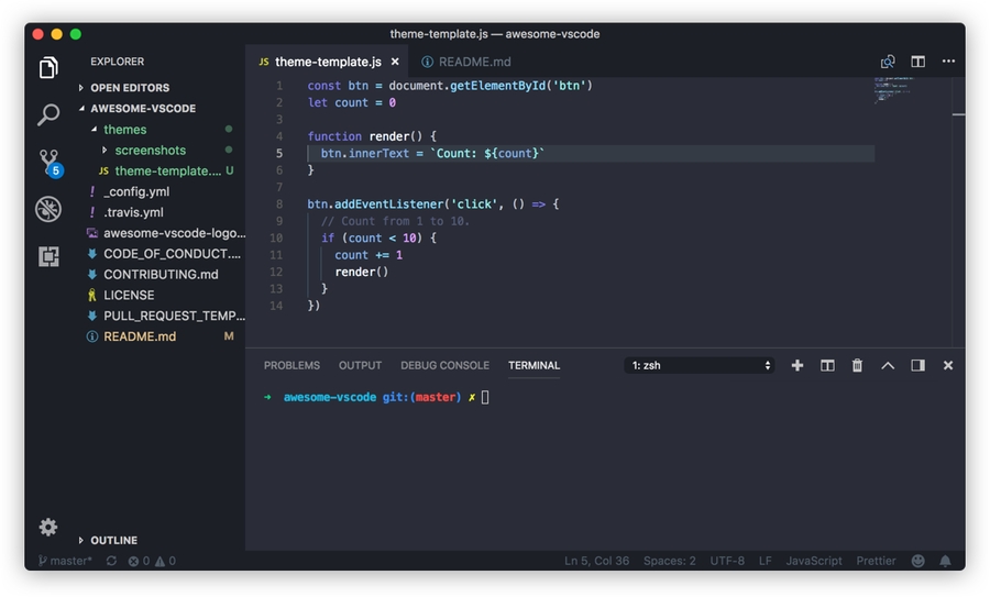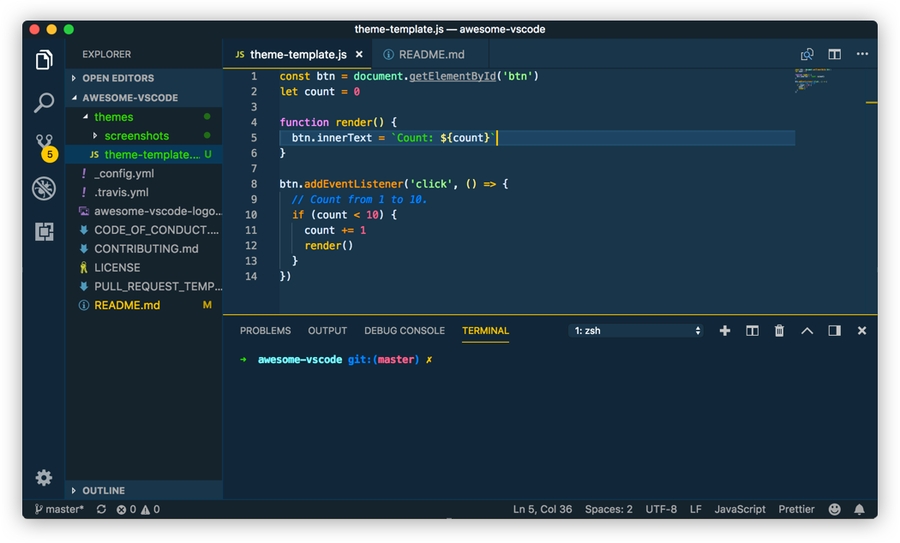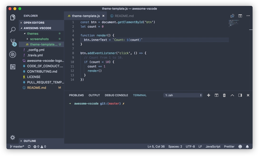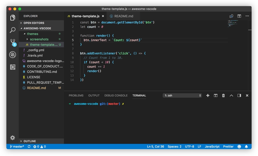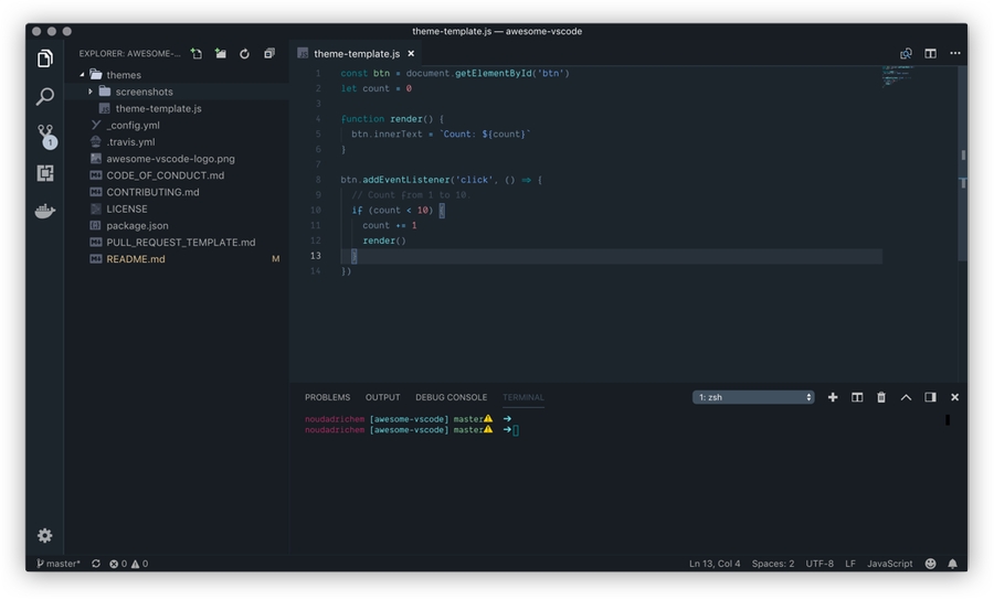 夜貓子的 VS Code 主題. 在白天也能很好地工作,但這個主題非常適合我們這些喜歡在深夜編寫程式碼的人. 顏色選擇考慮了色盲和光線不足的人可以使用的顏色. 決策還基於有意義的閱讀理解對比和最佳炫目效果. ✨