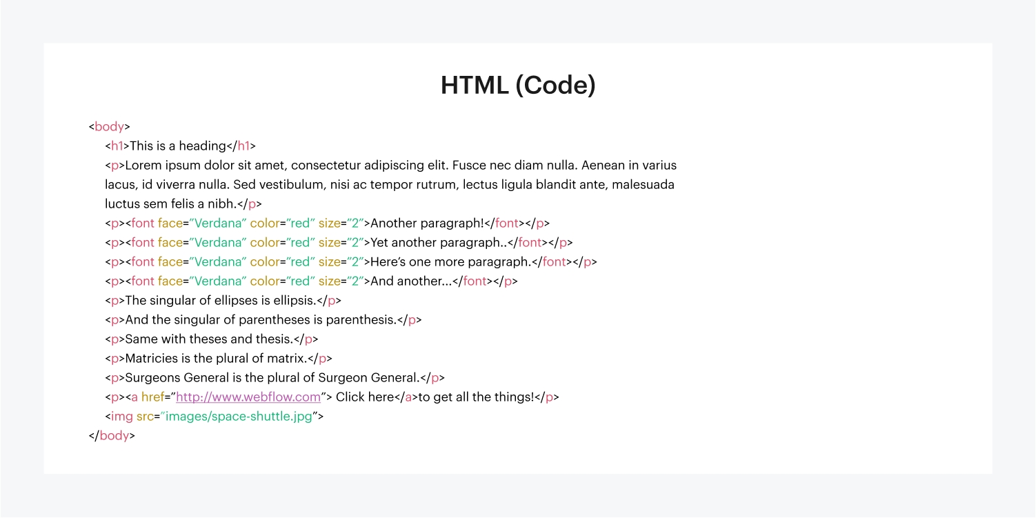 HTML 構成網站的結構和內容,而 CSS 樣式化內容。Webflow 在您設計時生成此代碼。