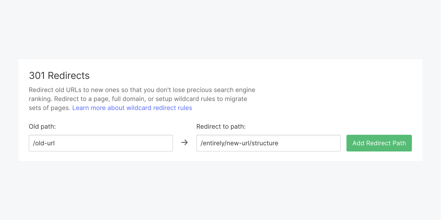 使用301重定向設置將舊頁面或整個頁面文件夾永久重定向到Webflow網站的新位置。