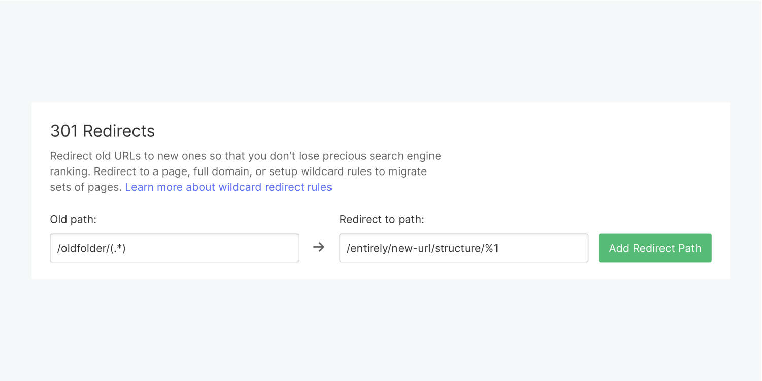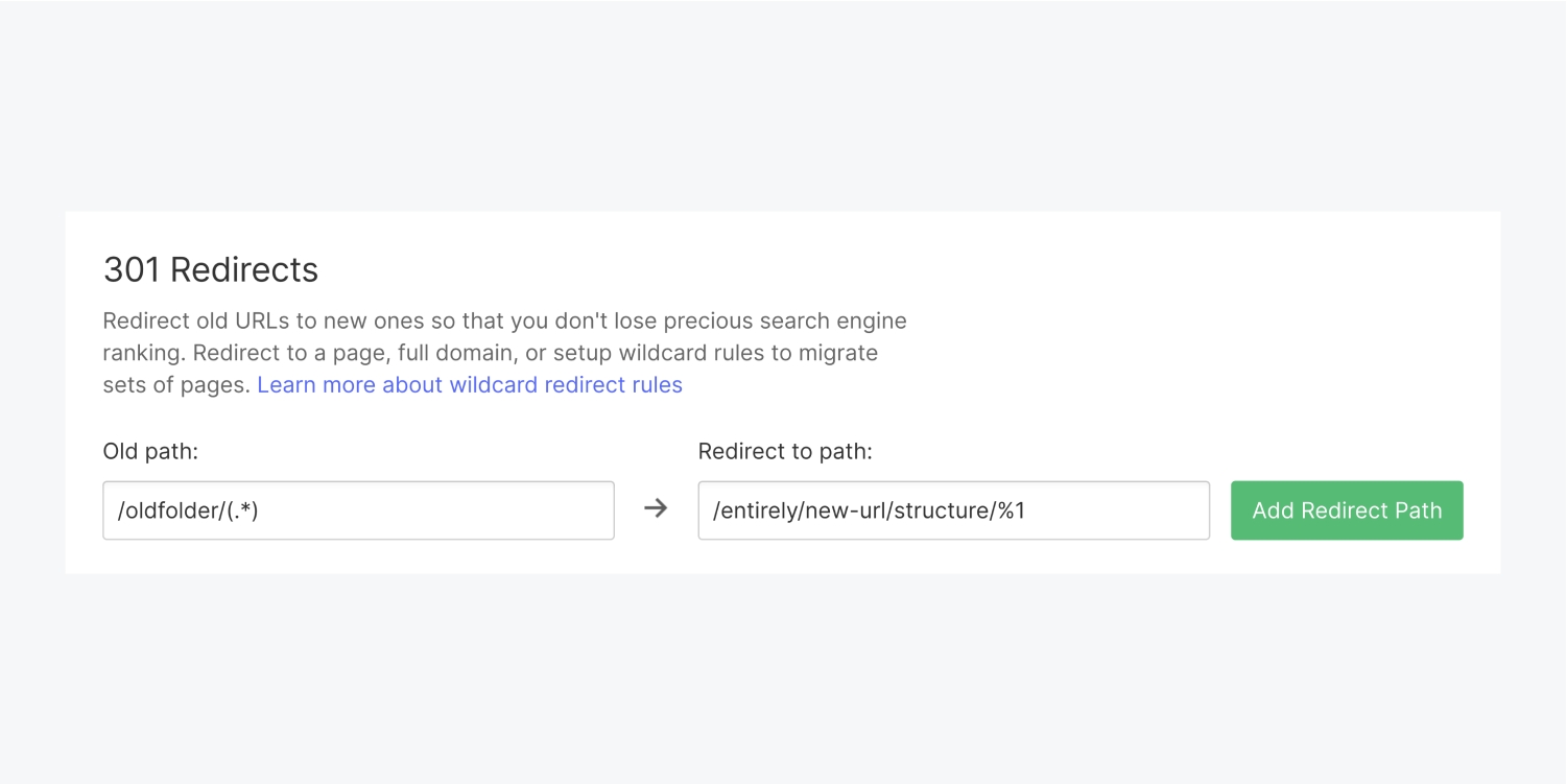 在"舊路徑"字段的舊URL結構中添加一個捕獲組(.)(例如:/oldfolder/(.))。