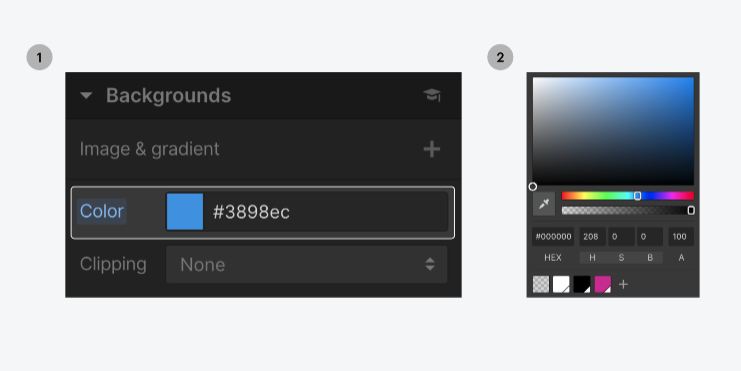 若要添加背景顏色,單擊右側的樣式面板,滾動到背景,然後從顏色選擇器中選擇一種顏色。