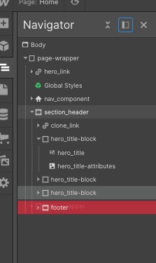你可以切到 CSS 樣式面板或 HTML 屬性的版面,對元素進行進一步設計調整,也可以針對層級去做拖拉。