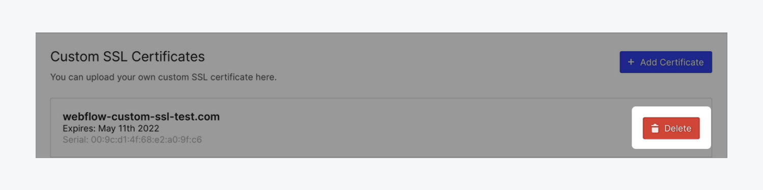 為了在設置主機時提供額外的靈活性,您可以上傳自己的自定義SSL證書到您的項目。(自定義SSL證書需要從第三方服務獲得,因為Webflow不發行自定義SSL證書)。