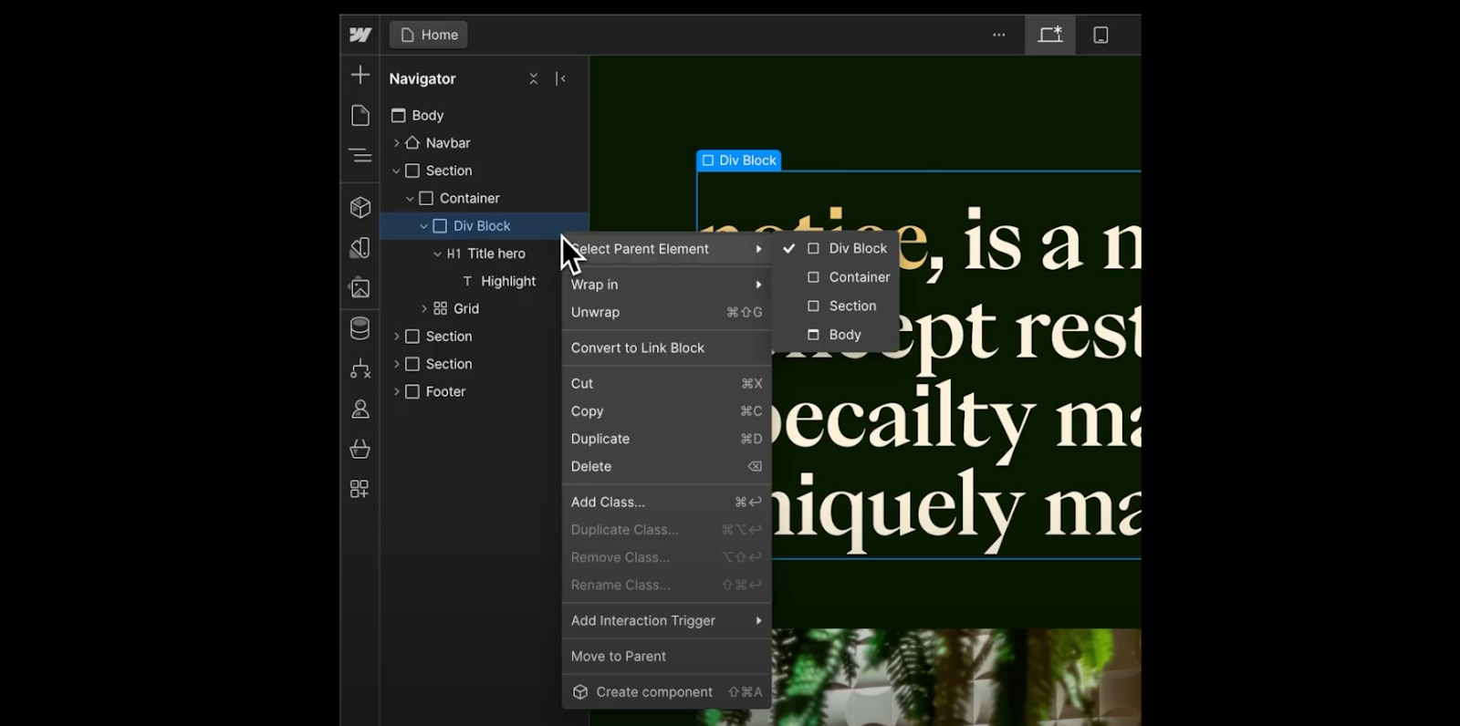 今天,我們將對右鍵單擊元素的支援擴展到以前僅在畫布上可用的導航器。現在,您可以在不離開導航器的情況下移動、換行或設計元素的樣式。