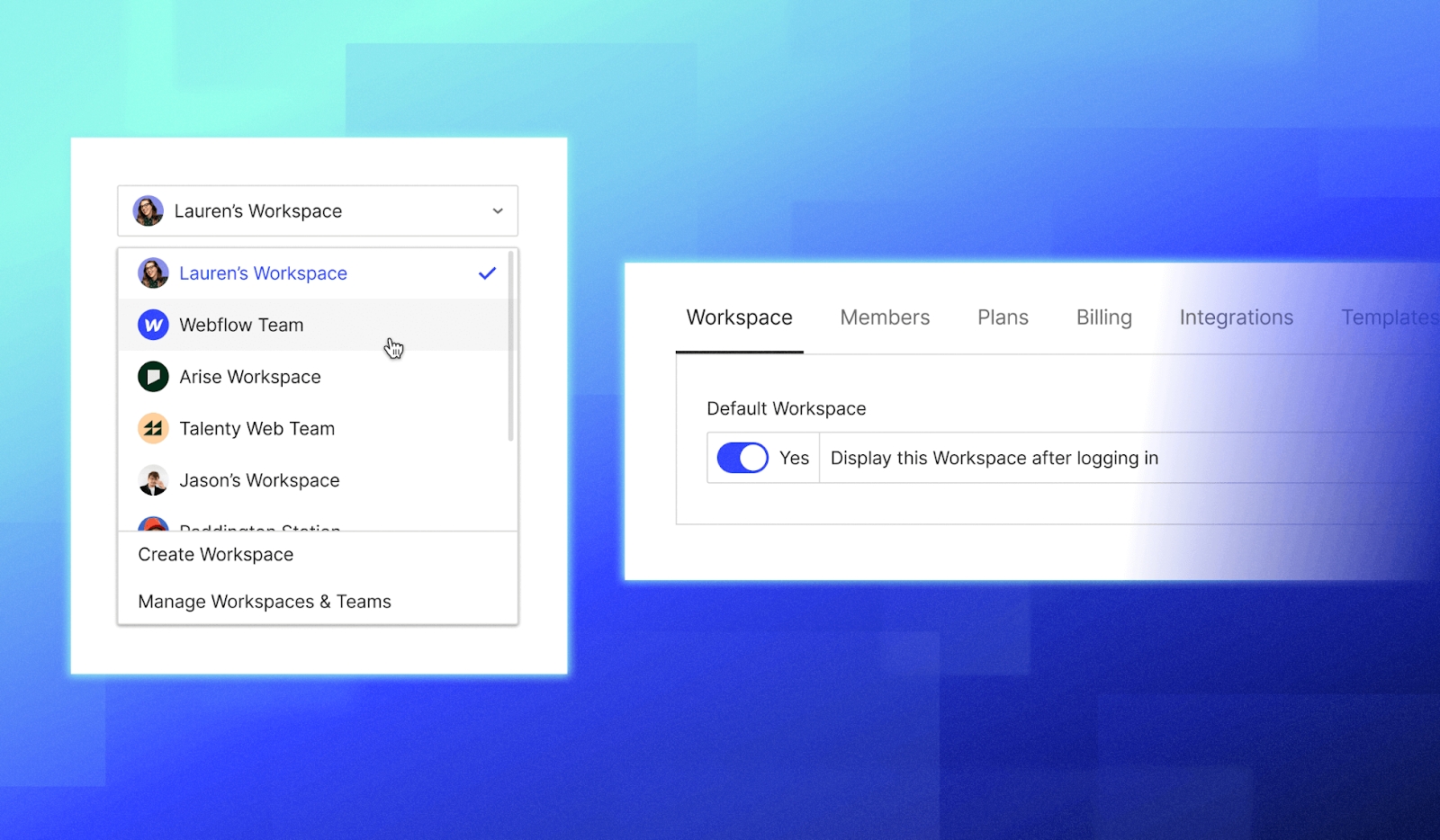 感謝來自多個工作區的客戶的及時反饋,我們進行了一些更新,使您可以更輕鬆地在 Webflow 的不同團隊之間移動: