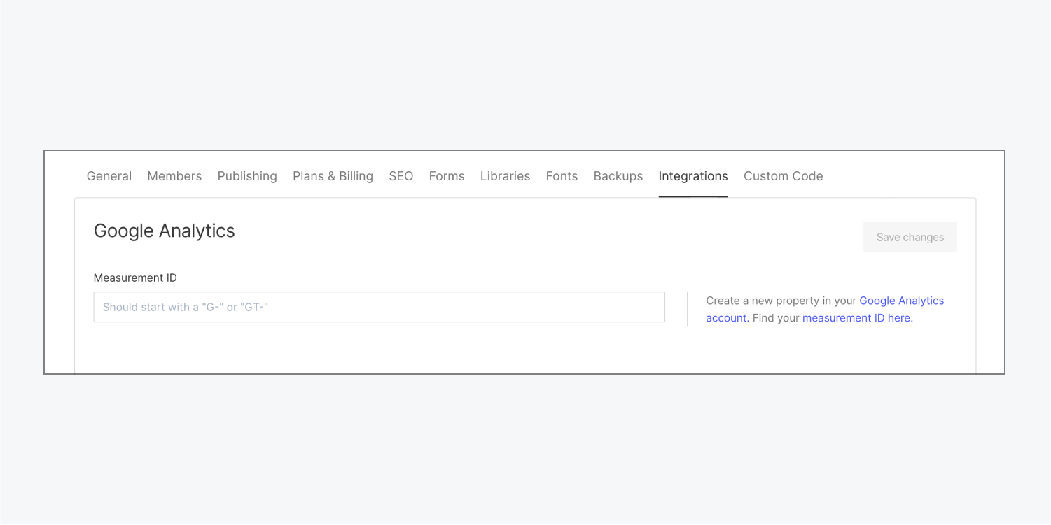 * **如果您當前通過此集成配置了 Universal Analytics 測量 ID**，您現在將在站點設置的“集成”選項卡上看到一條提示，將您現有的測量 ID 替換為 Google Analytics 4 ID。您的 Universal Analytics 腳本將保持不變，並將繼續向該媒體資源傳遞數據，直到該產品被 Google 正式停用，但您可以隨時選擇將其刪除。\ <br>
