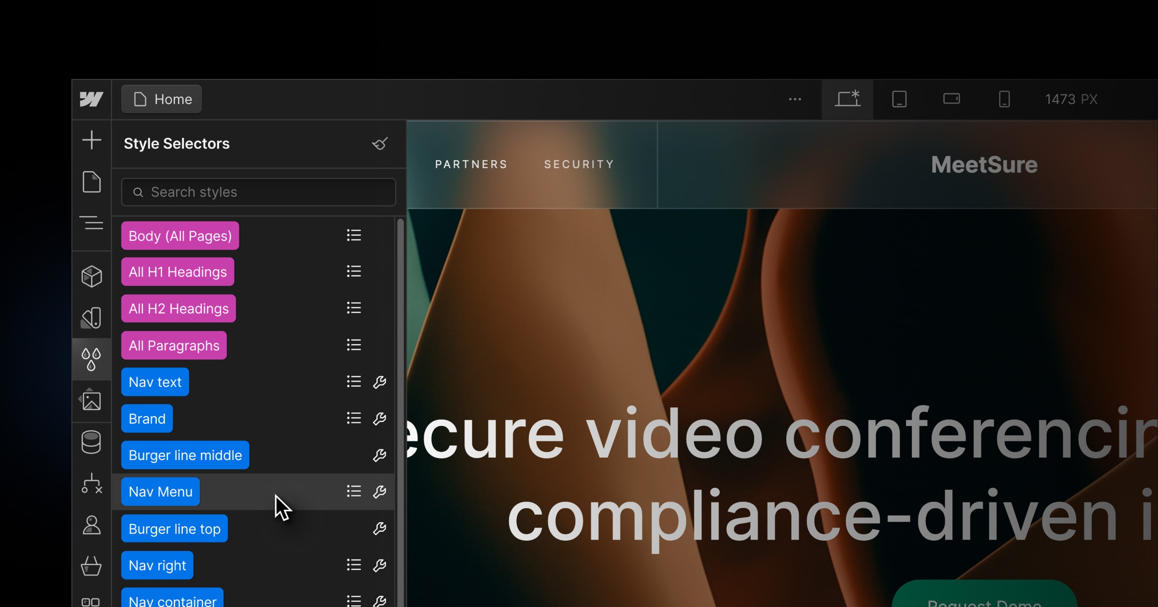 Webflow 改進的使用者介面提供了更集中的工作空間和現代設計。