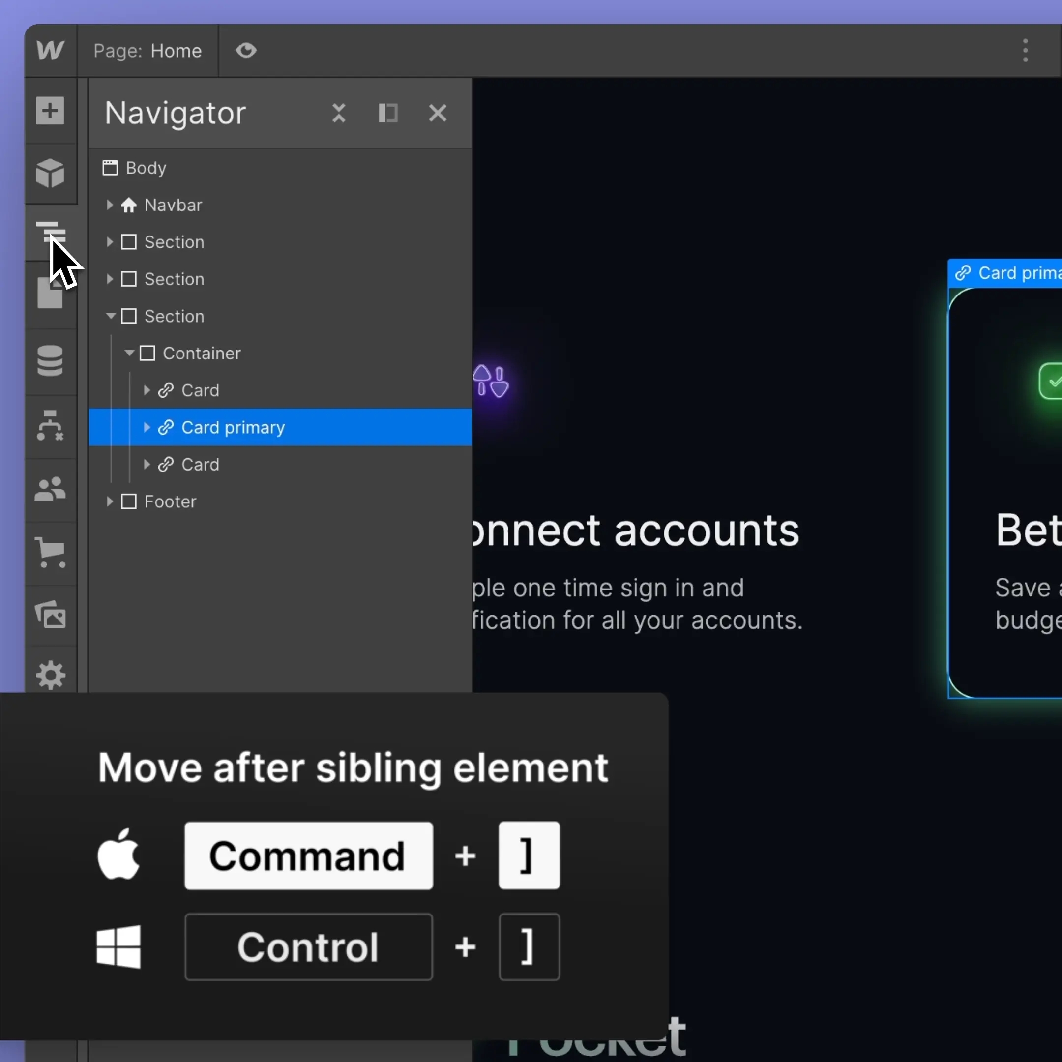 今天,我們引入了鍵盤快捷鍵,使用戶能夠更有效、更精確地在 Webflow 畫布上移動元素,從而減少對滑鼠和導航器的需求。