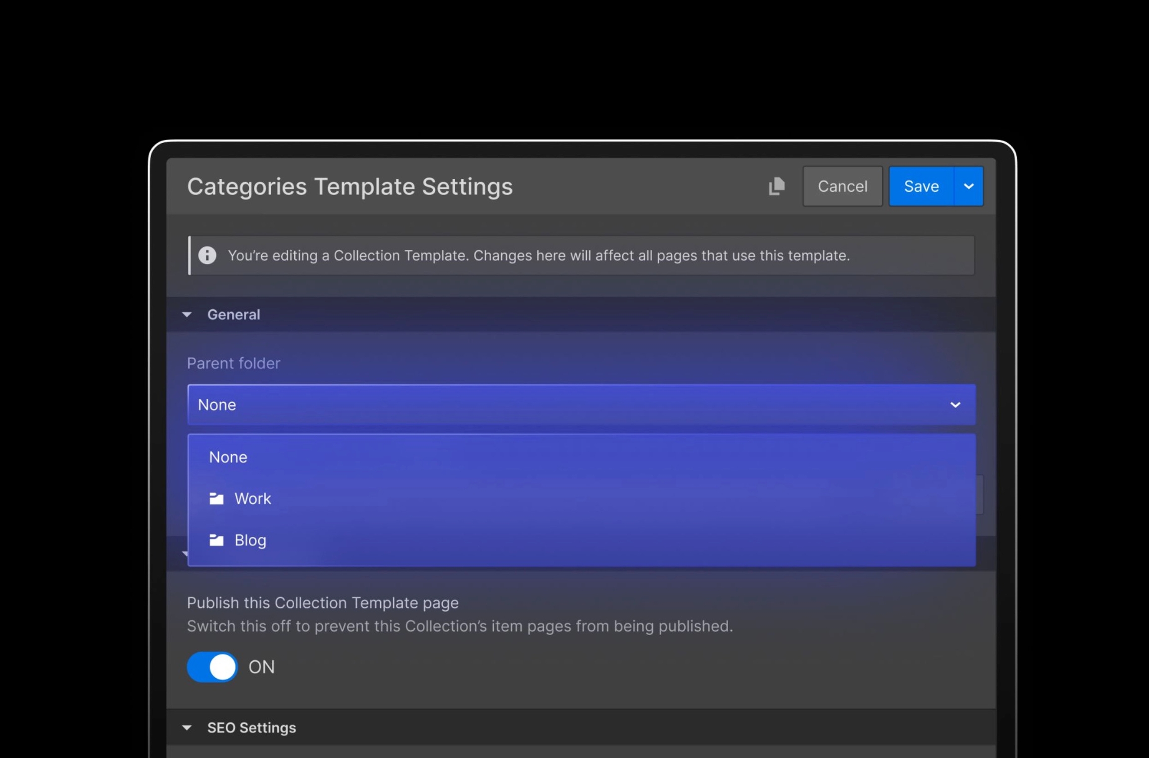 在文件夾中嵌套集合頁面以進行更多 URL 控制。在 URL 子目錄中發布您的收藏項目以優化您的 SEO 配置文件。