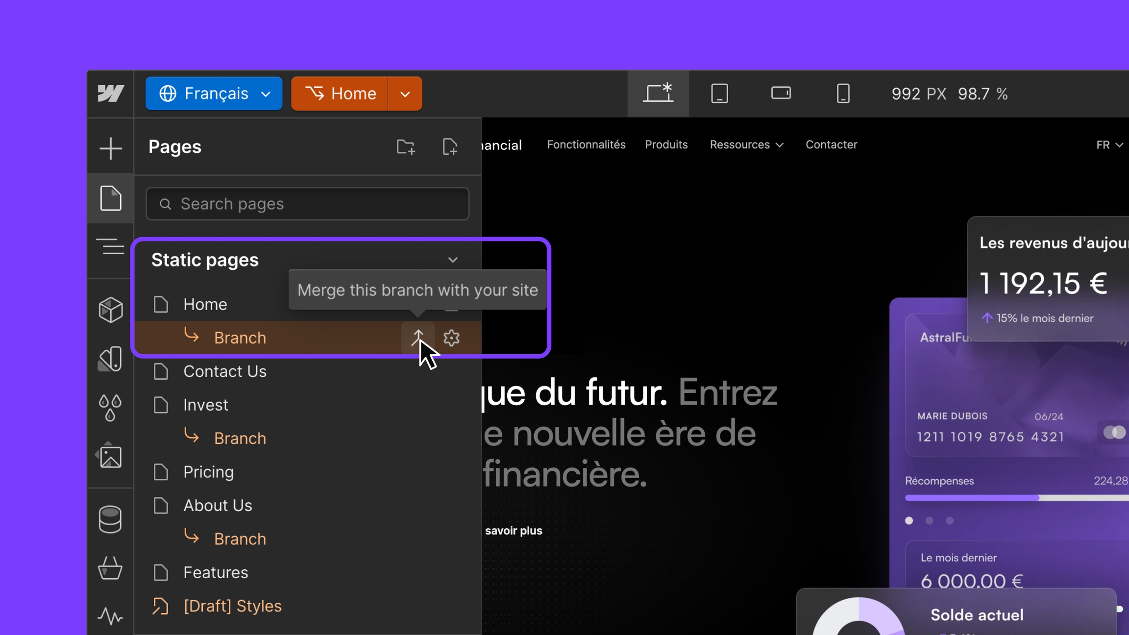 要了解有關頁面分支及其如何與本地化配合使用的更多信息,請訪問Webflow University。若要存取 Webflow Enterprise 或觀看演示,請聯絡我們的銷售團隊。