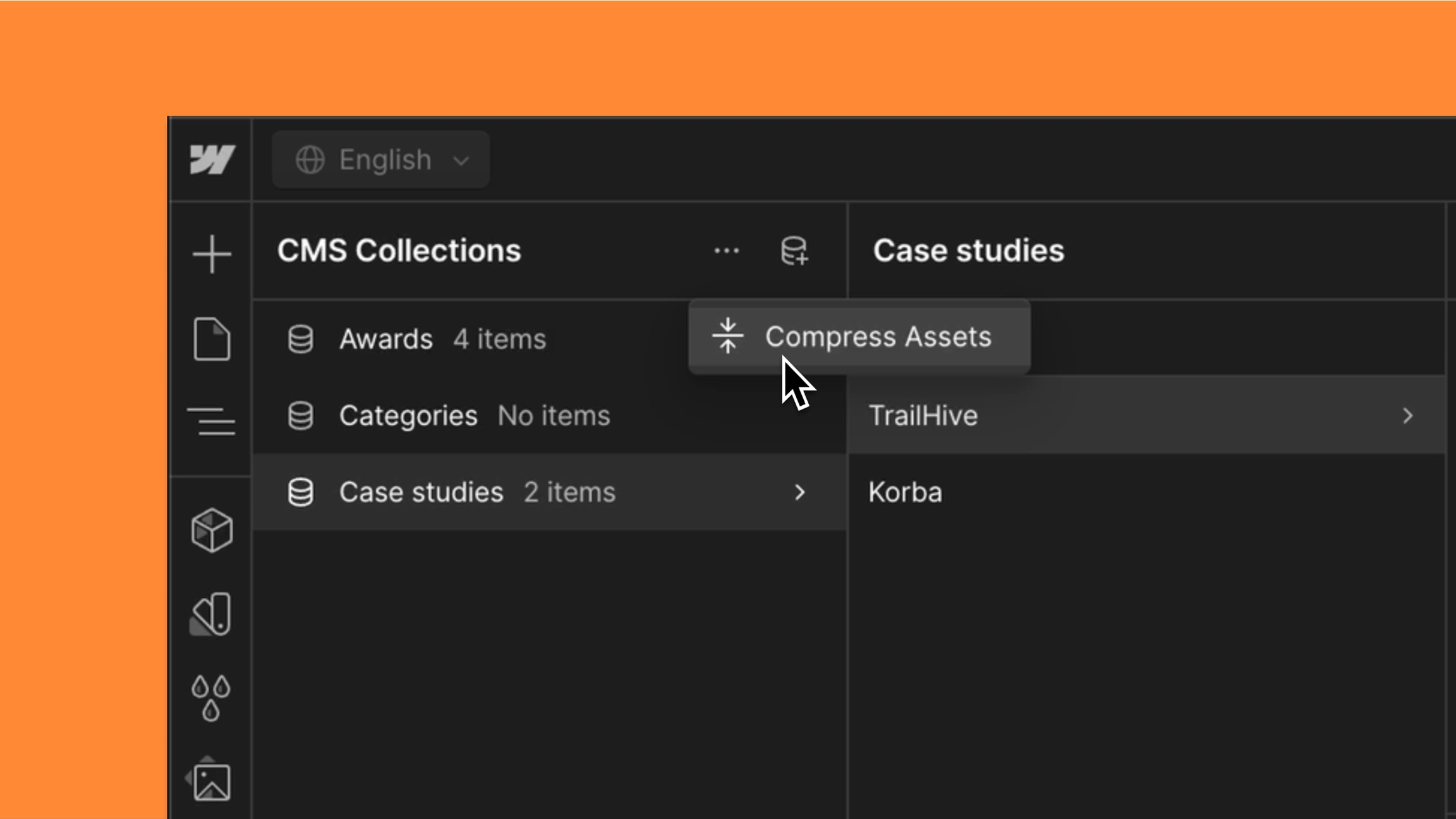 在先前的WebP 影像支援功能的基礎上,我們很高興地宣布,您現在可以將 CMS 映像轉換為 Webflow 網站中所有集合中的 WebP 文件,以提高效能。