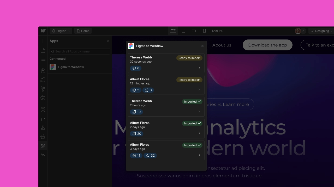 今天,我們很高興與大家分享,Webflow 更新了其插件的功能,讓設計師更快、更輕鬆地將 Figma 設計匯入 Webflow。