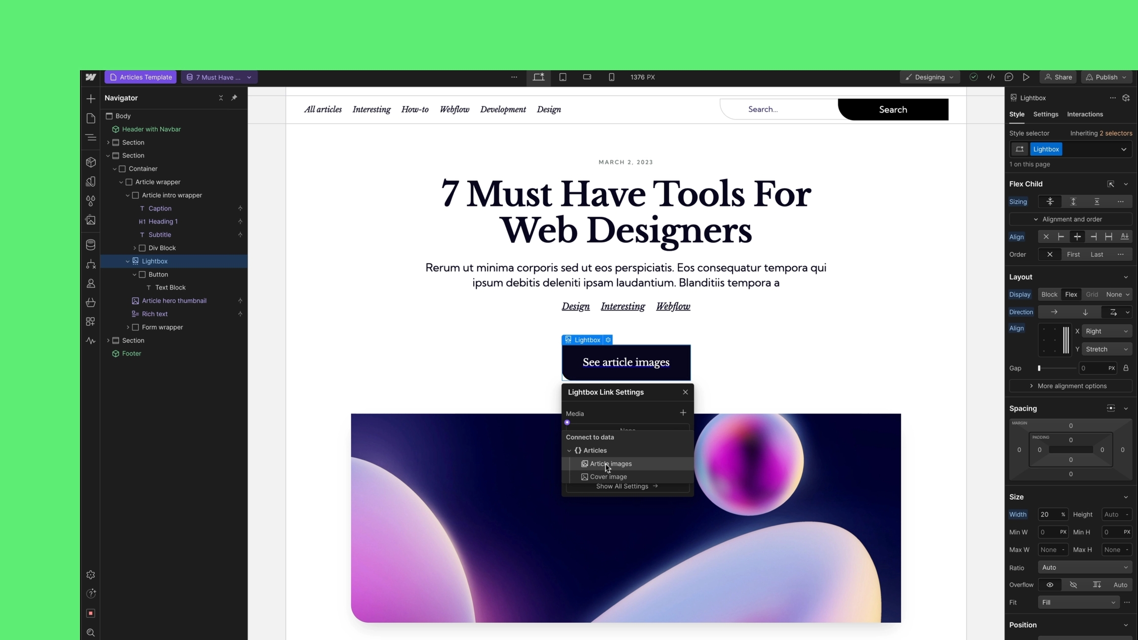 現在,使用者可以將 CMS 和電子商務多影像字段直接綁定到 lightbox 的媒體字段,擴展設計師可以創建的體驗的多樣性,並增強 Designer 中 lightbox 的動態特性。