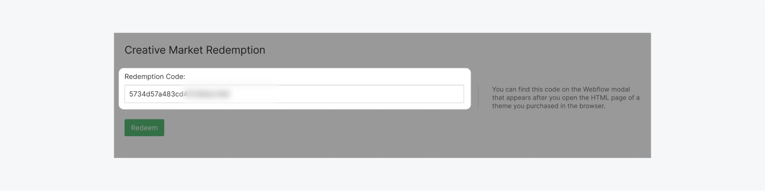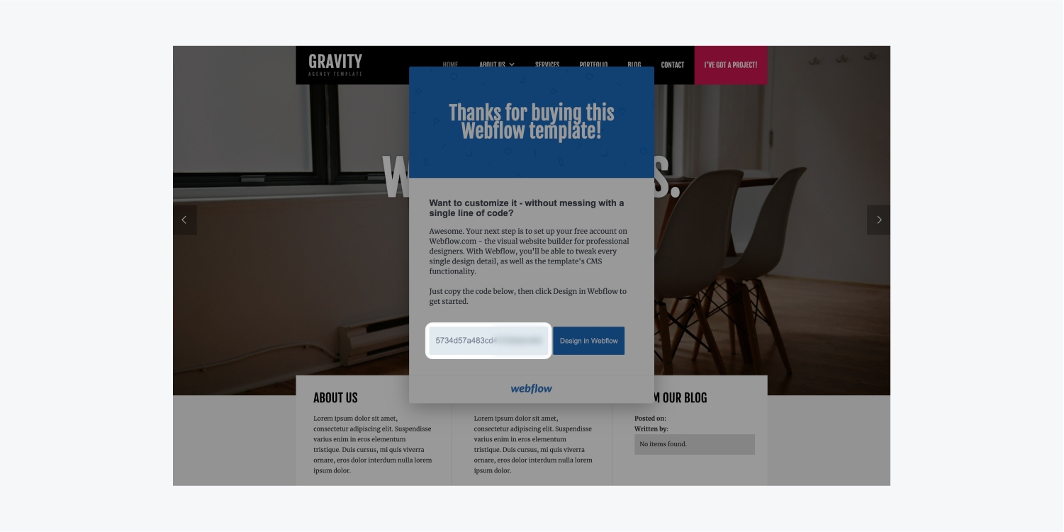 在您打開您購買的主題的HTML頁面後出現的Webflow模版上複製兌換代碼。