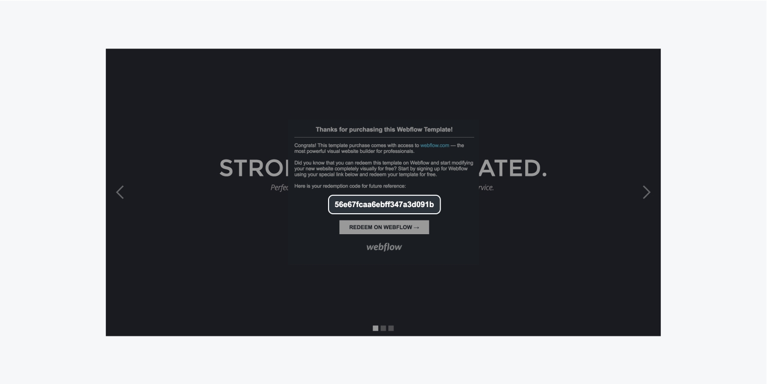 當您從Themeforest購買了一個Webflow模板,請兌換並從Webflow設計器內訪問它。