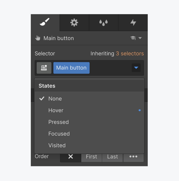 CSS面板設置 — 快捷鍵:S 使您可以訪問可用於選擇元素的所有 CSS 屬性。您只需在相應的字段中輸 入這些值,即可立即在畫布上查看應用於您的元素的樣式。