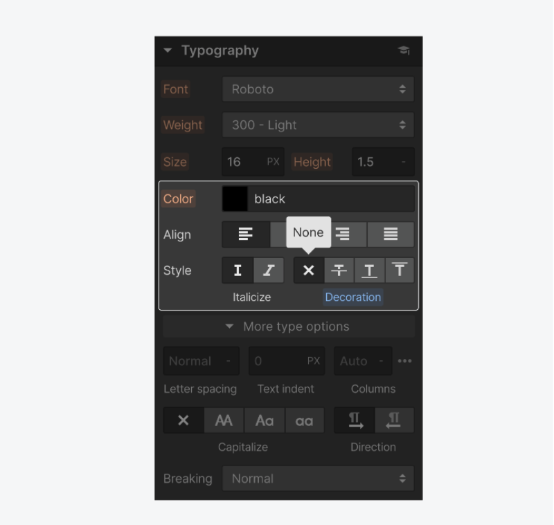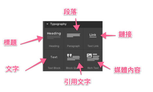 文字 - 與文字相關的元素,包括標題、段落、超連結