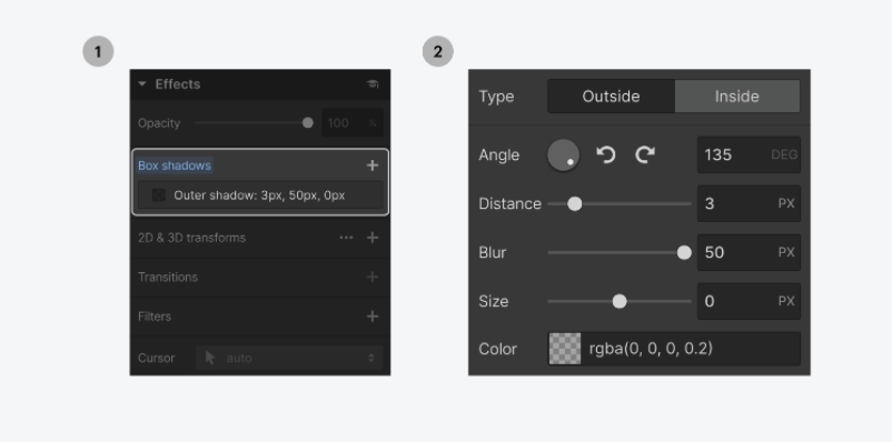 持續時間和過渡類型可以被訂製,常見的用例是為元素的懸停狀態創建平滑的過渡,以便它們不會在懸停時突然改變。