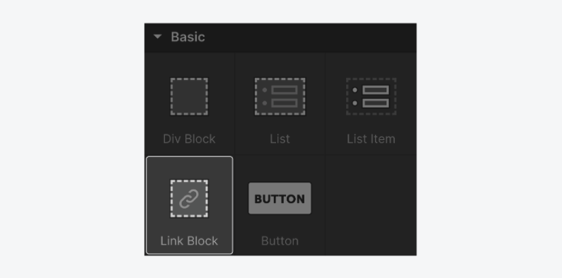 最基本的常用元素組合 - 像是 Div Block、List、Link Block、按鈕